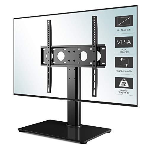 Der universaler TV Ständer is geeignet für TV-Geräte, PC-Monitore mit Bildschirmdiagonale 32 – 55 Zoll; Bildschirmaufnahme belastbar max. ca.40 kg; VESA Kompatibilität max.: 400 x 400 mm Der TV Ständer ist höhenverstellbar mit 3 Stufen für optimale Betrachtung. Das Sicherheitsglas hat eine Grundfläche und dient als Ort für ihre AV-Komponenten. Die Pads auf der Bodensatz verhindern das Kratzen auf den Oberflächen. Dieser Sockel TV Ständer ist aus hochwertigen Materialien gefertigt, ist sehr robust und langlebig.Mit der Kabelführung können Sie die Kabel zusammenführen. Somit sieht das Gesamtbild mit Ihrem Tisch ordentlich und sauber aus.Die Halterung auf dem TV Ständer ist abtrennbar, können als eine TV Wandhalterung werden sein. Einfach zu installieren. Mit Bedienungsanleitung und kostenfrei Montage Hardware.