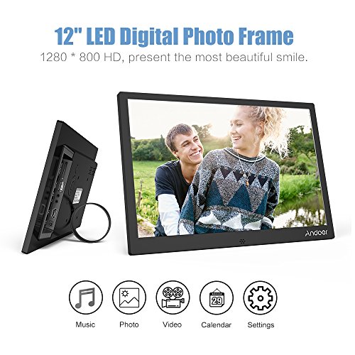 Spezifikationen: Eingangsspannung: 100 – 240 V 50 / 60Hz Rahmen: Aluminiumlegierung Chipsatz: V59 Seitenverhältnis: 16: 9 Unterstützungsfoto-Format: JPGE Unterstützung Audio / Video-Format: MP3 / WMA / MPEG / AVI / MP4 / RMVM / RM / MKV / MOV / ASF / TS und H.264 Encoding File Lautsprecher: 2 * 5W Stereo Case Lautsprecher Diashow Zeit: 3/5/10/30 / 60s Anzeigemodus: Auto / Fit / Panorama Zeiteinstellung: Jahr-Monat-Tag-Stunde-Minute Helligkeit: 0-100 Kontrast: 0-100 Sättigung: 0-100 Auto Power: jeden Tag / einmal Automatische Wiedergabe: Foto / Musik / Film / Foto + Musik Bildlauffarbe: Schwarz / Weiß / Rot / Blau / Grün / Aus Sprache: Englisch / Japanisch / Spanisch / Deutsch / Italienisch / Französisch Schnittstelle: Secure Digital Speicherkartensteckplatz / MMC-Kartensteckplatz, USB 2.0-Anschluss, AV OUT, HD OUT, Kopfhöreranschluss, DC IN Fernbedienung Batterie: CR2025 3V Lithium-Batterie (im Lieferumfang enthalten) Ausgang: 12V 1A-3A Einzelteil-Größe: 28 * 19 * 2.5cm / 11 * 7.5 * 1″ Artikelgewicht: 525g / 18.5oz Packungsgröße: 43 * 24.2 * 7.4cm / 16.9 * 9.5 * 2.9″ Verpackungsgewicht: 998g / 2.2LbsPaketliste: 1 * Digitaler Bilderrahmen 1 * Fernbedienung mit Batterie 1 * Stent 1 * Stecker 1 * Benutzerhandbuch (Englisch / Deutsch / Spanisch / Französisch / Italienisch / Japanisch)Hinweis: 1. Die Secure Digital Memory Card ist nicht im Lieferumfang enthalten, und Klasse 10 oder höher wird dringend empfohlen, um einen reibungslosen Betrieb zu gewährleisten. Bitte beachten Sie, dass dieser digitale Bilderrahmen maximal 1000 Fotos von Ihrer Speicherkarte anzeigen kann. 2. Wandbehang ist nicht enthalten