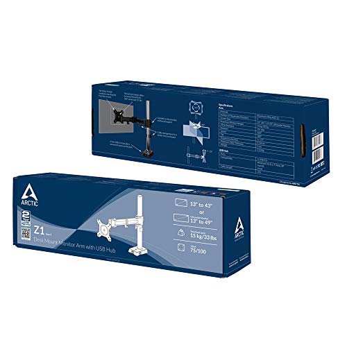 Der ARCTIC Z1 wurde entwickelt, um deinen Arbeitsablauf und deine Ergonomie zu verbessern. Die platzsparende Bauweise schafft Platz auf deinem Schreibtisch. Das integrierte Kabelmanagement verhindert Kabelsalat, während der USB Hub mit 4 Anschlüssen eine bequeme Verbindung deiner USB-Geräte direkt auf dem Schreibtisch ermöglicht. Dank der einfach einstellbaren Höhe sowie den Funktionen zum Drehen, Neigen und Schwenken kannst du mühelos einen ergonomisch korrekten Blickwinkel in Sekundenschnelle erreichen. Genieße die neue Display-Flexibilität und komfortable Stunden vor deinem Bildschirm. Die Halterung kann Monitore bis zu 15 kg (33 lbs) tragen, einschließlich Ultrawide-Monitore bis zu 49 Zoll. Egal, ob du den Z1 zum Arbeiten oder Spielen benötigst, er bietet eine großartige Ergänzung deines Setups. – 360° Flexible Ausrichtung – Höhenverstellbar (bis max. 38 cm oberhalb der Tischplatte) – Kabelmanagement sorgt für einen aufgeräumten Schreibtisch – Ergonomische Sitzhaltung durch vielseitige Einstellmöglichkeiten – Praktischer 4-Port USB Hub – Einfache und schnelle Montage – Für große und Ultrawide-Monitore geeignet Anschlüsse und Schnittstellen -Anzahl USB 2.0 Anschlüsse: 4 -USB-Anschluss: Ja Gewicht & Abmessungen -Gewicht: 2,7 kg -Verpackungsbreite: 426 mm -Verpackungstiefe: 93 mm -Verpackungshöhe: 134 mm -Paketgewicht: 2,43 kg -Verpackungsart: Box Energie -Ausgangsspannung: 5 V -Ausgangsstrom: 0,5 A Technische Details -Kompatible Betriebssysteme: Windows 10, 8,1, 7, Vista, XPnmacOSnLinux -Höheneinstellung: 38 cm -Kabellänge: 2 m Ergonomie -Höhenverstellung: Ja -Neigungswinkelbereich: -15 – 15° -Swivel Winkel: 180° -Drehungswinkel: 360° -Kabelmanagement: Ja Lieferumfang -Anzahl der Kabelklemmen: 1 –