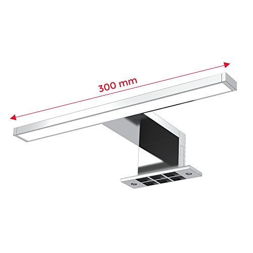 Moderne LED Spiegelleuchte Talitha – Eine sichtbare Aufwertung für Ihr Bad! Lassen Sie Ihr Zuhause in neuem Licht erstrahlen! Die moderne Spiegellampe Talitha ergänzt moderne Einrichtungen mit ihrem schlichten Design und wertet Ihr Zuhause auf. Mit einer Länge von 300 mm und der aluminiumfarbenen Oberfläche passt die Lampe perfekt über kleine bis mittelgroße Objekte. Aufgrund der Schutzart IP44 zeichnet sich die Leuchte besonders im Badezimmer aus. Dabei schafft das helle, neutral-weiße Licht mit 4.000 Kelvin ohne Gelb- und Blaustich ein natürliches Spiegelbild, weshalb die Spiegelleuchte das perfekte Kosmetiklicht ist. Für gründliches Schminken und eine gelungene Rasur! Ein integriertes LED-Modul sowie eine im Lieferumfang enthaltene Aufbau- und Spiegelklemme runden die Spiegelleuchte als eine stromsparende und leicht zu montierende Lichtquelle ab. Wichtige Produktdetails: Stromkosten sparen – dank moderner LED Technologie durchschnittliche Lebensdauer – 25.000 h langanhaltende Freude hohe Lichtleistung – 500 Lumen sorgen für ausreichende Helligkeit angenehme Lichttemperatur – 4.000 Kelvin sorgen für hell-weißes Licht Produktmaße – 300 x 103 x 36 mm Leuchtmittel sind fest verbaut Weitere Vorteile: ✓ umweltfreundlich✓ einfache Montage✓ kein Summton✓ gleichmäßige Lichtverteilung✓ hohe Farbwiedergabe Lampen und Leuchten sind mehr als nur Lichtspender. Sie sind das Wohlfühl-Extra für Ihr Zuhause. Sie sind Lesehilfe, Stimmungsmacher, Entspannungshelfer, Deko-Highlight, Raumkonzeptabrunder und noch vieles mehr. Das Ziel von B.K.Licht ist, dass Sie sich zu Hause noch wohler fühlen. Mit aktuellen Trends, direkt vom Hersteller. Leuchten für helle Köpfe! Unser exklusives Sortiment bringt Ihr Zuhause zum Strahlen. Sollten Sie einmal Fragen oder Anmerkungen zu einem unserer Produkte haben – wir haben immer ein offenes Ohr für Sie!