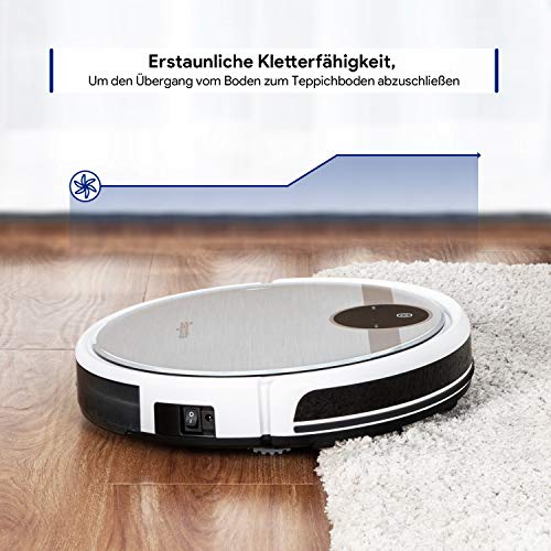 ● Service: Wenn Sie Probleme mit der Verwendung haben, setzen Sie sich bitte mit uns in Verbindung, bevor Sie sie direkt zurücksenden 1 Jahr Garantie: Wir senden Ihnen eine neue, wenn wir das Problem nicht lösen können. ● Über Bagotte: Wir sind ein großes Unternehmen mit mehr als 5.000 Mitarbeitern. Wir arbeiten nur mit Lieferanten mit mehr als 1000 Mitarbeitern zusammen, starke und gute Zulieferer sichern qualitativ hochwertige Produkte und senken die Fehlerquote. ● Spezifikation: Geräusche: 50-60 DB Batteriekapazität: Li-Ion (2150 mAH) Absaugung: 0,6-0,8 kPa Maximale Arbeitszeit pro Ladung: 120 Minuten ● Hinweise: Bitte laden Sie den Roboter vor dem ersten Gebrauch 12 Stunden lang auf. Entfernen Sie alle Hindernisse 2 Meter vor der Ladestation. Stellen Sie sicher, dass keine Kabelgewirr und Kabel vorhanden sind lose im Reinigungsbereich. Sie müssen das Abwischen vor dem Abwischen benetzen und wringen. Vergewissern Sie sich, dass der Schrapnell des Wassertanks und der Schrapnell sich befinden des Staubsaugers sind eng miteinander verbunden. Dann kann der Wassertank während der Arbeit Wasser versickern. Bitte stellen Sie sicher, dass der Staubbehälter oder der Wasserbehälter vollständig in den Staubsaugerkörper eingesetzt ist, andernfalls Der Fremdkörper kann in den Lüfter eindringen und Geräusche verursachen. ● Andere: Wischtuch: Waschbar. Ersetzen Sie es alle 3 Monate. Fernbedienung: Benötigt 2 AAA-Batterien, nicht im Lieferumfang enthalten. Magnetstreifen: 79 Zoll, um das Reinigen einiger Flächen zu vermeiden, flache Seite nach unten. Seitenbürste: Waschbar. Erscheint einige Sekunden in heißem Wasser. Wenn es nicht in Form ist.