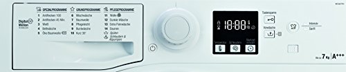 Die Waschmaschine Bauknecht WA Soft 7F41 hat eine Höchstschleuderzahl von 1400 U/min und kann 7 kg Wäsche aufnehmen. Startzeitvorwahl und Restanzeige sind über das Display jederzeit im Blick. Die WA Soft 7F41 hat eine EcoTech-Mengenautomatik, die den Wasserverbauch mit Sensortechnologie optimiert. Die Digital Motion-Technologie entfernt Flecken schonend durch genau abgestimmte Trommelbewegungen. Antiflecken 100 entfernt mehr als 100 Flecken bei nur 40 °C, ganz ohne Vorbehandlung. Antiflecken 45' entfernt die 30 gängigsten Flecken bei 40 °C in nur 45 Minuten. Die Temperaturkontrolle sorgt dafür, dass das Waschmittel optimal wirken kann. Das mit dem Woolmark Green Zertifikat ausgezeichnete Wolleprogramm wäscht empfindliche Wolle wie von Hand. In puncto Sicherheit glänzt die WA Soft 7F41 mit einer Kindersicherung und einem Mehrfachwasserschutz +.