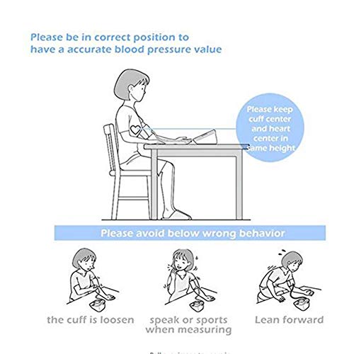 Eigenschaften: Systolische Lesungen, Diastole und Pulsationen werden gleichzeitig angezeigt Der Wecker ist ein echter Hingucker bei unregelmäßigen Ergebnissen. LCD-Display, schnell ablesbar Bedienung per Tastendruck, einfache Bedienung Die oszillometrische Methode, die für leises Auftreten verwendet wird. Mit Speicher von 180 Speicherplätze für zwei Benutzer können die ältesten Testergebnisse prüfen Automatische Abschaltung nach 30 Sekunden Inaktivität Display: LCD Digital Display Messmethode: oszillometrische Methode Automatische Abschaltung: 30 Sekunden Betriebstemperatur: 5 – 40 °C Betriebsfeuchtigkeit: 10% – 93% RH Transporttemperatur: -20 – 55 °C Transportfeuchte: 93 % oder weniger Luftdruck: 500 – 1060 hPa Druckhöhen: 70 – 106KPa Impulsbereich: 40 – 199 Schläge / Minute Messauflösung: 1mmHg Genauigkeit: Druck innerhalb + / – 3 mmHg / Impuls + / – 5 % Lesen Betriebsspannung: 6V Stromausfall: weniger als 20uA Stromspitze: weniger als 60 mA Stromversorgung: 4 x 1,5 V AAA-Batterien (nicht im Lieferumfang enthalten)