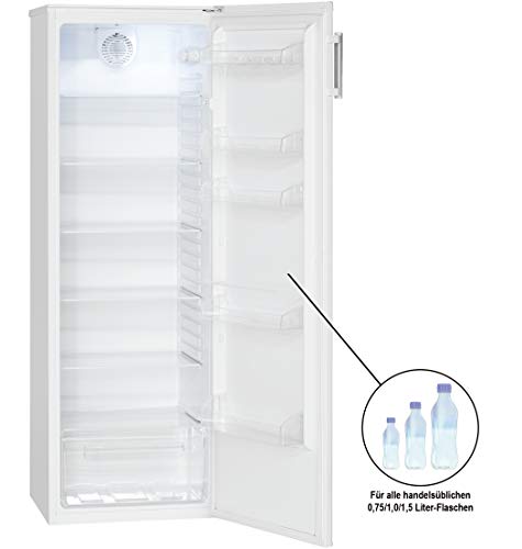 Der Kühlschrank Bomann VS 3173 bietet einen Gesamtnutzinhalt von 300 Litern und stellt fünf höhenverstellbare Glasabstellflächen, eine transparente Obst-/Gemüseschublade mit Glasabdeckung sowie fünf Türfächer zur übersichtlichen Lagerung frischer Lebensmittel zur Verfügung. Die Temperaturregelung erfolgt stufenlos und der Kühlraum ist mit einer automatischen Abtaufunktion sowie einer LED-Innenraumbeleuchtung ausgestattet. Mit einem Stromverbrauch von 108 kWh im Jahr ist der VS 3173 in die Energieeffizienzklasse A++ eingestuft und schont damit Geldbeutel und Umwelt.