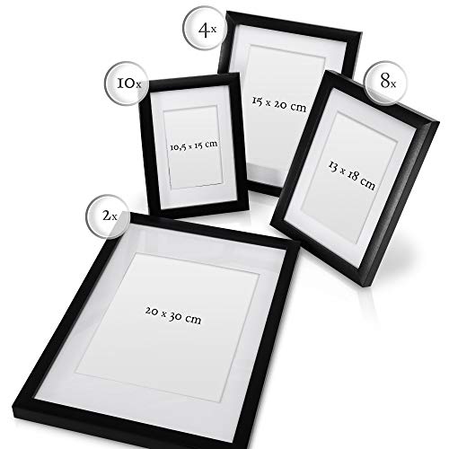 bomoe Bilderrahmen-Set für Collagen aus MDF Holz und bruchsicherem Plexiglas Sie wollen eine Lösung um Ihre Wände stilvoll zu dekorieren, Ihre Fotos aufzuhängen oder ihre gemalten Bilder immer in Sichtweite zu haben? Mit dem Bilderrahmen Set von Bomoe haben Sie die perfekte Lösung gefunden. Verteilen Sie die Bilderrahmen Collage doch in verschiedenen Zimmern oder machen Sie eine große Collage daraus. Ob quer oder hochkant, mit den mitgelieferten Bildern oder eigenen, Sie können individuell entscheiden wie Sie dieses Fotorahmen Set am besten nutzen wollen. Zudem sind die Bilderrahmen mit Standfüßen ausgestattet, sodass sie ohne Probleme auch auf ihren Tischen oder Möbeln Platz nehmen können. Die Bomoe Bilderrahmen Sets bestehen aus MDF-Holz und bruchsicherem, beidseitig foliertem Plexiglas. Somit ist sichergestellt, dass Ihre Bilder, seien es Fotos, Kunstwerke oder selbst gemalte Bilder, langfristig vor Schmutz geschützt sind. Zu diesem Set gehören Passepartouts für alle Bilderrahmen. So können Sie auch kleinere Bilder in die Fotorahmen integrieren während sie den Edlen Look behalten. Mit den Passepartouts kann man die folgenden Größen verändern: ohne PPT mit PPT 20×30 cm 15×20 cm 15×20 cm 10×15 cm 13×18 cm 9×13 cm 10×15 cm 7×10 cm Details: Marke: Bomoe Serie: Nature Lieferumfang: 10×10,5x15cm / 8x13x18cm / 4x15x20cm / 2x20x30cm Material: MDF-Holz und Plexiglas Inklusive Passepartouts für alle Rahmen