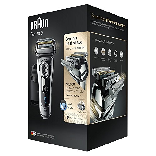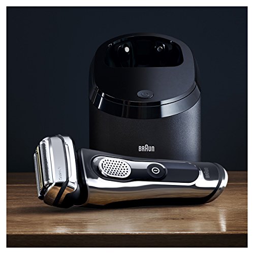 Rasierapparatsystem: Folie. Produktfarbe: Chrom. Energiequelle: Batterie/Akku, AC Eingangsspannung: 100-240 V. Verpackungsbreite: 15,7 cm, Verpackungstiefe: 15,7 cm, Verpackungshöhe: 25,2 cm. Funktionen der Rasierer-Basisstation: Ladend, Reinigung, TrocknLeistung Rasierapparatsystem : Folie Trimmer : Ja Nass & Trocken : Ja Zahl der Rasierapparatköpfe/-klingen : 5 Design Produktfarbe : Chrom Abwaschbar : Ja Strom Energiequelle :