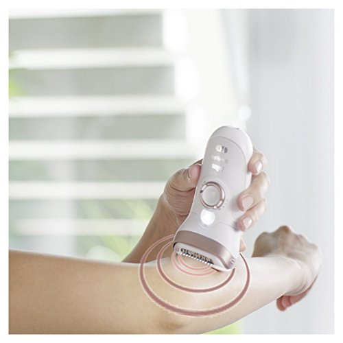 Stil:SensoSmart Epilierer + Bikini-Trimmer Produktbeschreibung Der Braun Silk-épil 9 SensoSmart ist der weltweit 1. intelligente Epilierer. Er hat eine integrierte SensoSmart-Drucksensortechnologie, die Ihre Epilation kontrolliert und noch mehr Haare in einem Zug entfernt. Der 40% breitere Epilierkopf entfernt 4-mal kürzere Haare als Wachs. Der kabellose Wet & dry Epilierer kann in der Badewanne oder unter der Dusche verwendet werden. Mit fünf Extras, inklusive Körper- und Gesichtstrimmer für eine einfache Pflege empfindlicher Bereiche. Premium Qualität – Made in Germany. Im Vergleich zu anderen Epilierern von Braun. Set enthält: 1x Epilierer; 1x Massarerollenaufsatz; 1x Aufsatz für optimalen Hautkontakt; 1x Aufsatz zur Gesichtsepilation; 1x Rasierer- und Trimmeraufsatz; 1x Bikinitrimmer; 1x Aufbewahrungsbeutel