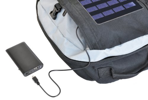 Bresser Solar-Rucksack inkl. AkkuDer BRESSER Solar Rucksack hat ein integriertes Solarpanel mit 1,5 Watt, ist sehr kompakt und als ganz normaler Rucksack zu gebrauchen, nur mit dem Vorteil, dass das integrierte LiIon Akkupack mit 1800mAh automatisch aufgeladen wird. Die Konnektoren für die gängisten mobilen Geräte sind im Lieferumfang enthalten, ebenso ein KFZ-Ladekabel und USB-Stromadapter. Wann immer auch die Sonne scheint – der Bresser Solar Rucksack lädt den Akkupack einfach auf und sie können Ihre mobilen Geräte ebenfalls aufladen, direkt oder später.Eigenschaften- Rucksack mit integriertem Solar Panel und Akkupack Solarpanel: 1,5 W- Li-Ion Akkupack 1800 mAhLieferumfang- Rucksack- Powerbank- KFZ-Ladekabel- USB Stromadapter- Konnektoren: Nokia (2x), iPhone/ iPod, Samsung, Sony Ericsson, Female USB, Mini USB, Nintendo DS Lite, Sony PSP- Bedienunsganleitung