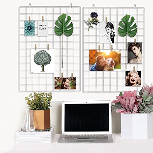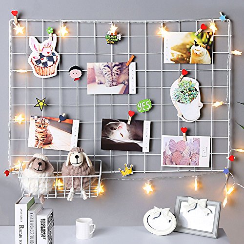 Produkt Eigenschaft: Das Dekogitter ist aus hochwertigem Metallmaterial gefertigt, welches verschleißfest ist, nicht rostet, leicht zu reinigen ist und eine lange Lebensdauer hat. DIY Metall mesh Gitter kann mit anderem Ornament abgestimmt werden, um eine gemütliche Atmosphäre zu schaffen, fröhlich und romantisch in Ihrem Raum. Diversifizierte Funktionen. Sie können es als Fotowand benutzen oder es an die Wand hängen, um Ihre Postkarten,Weihnachtskarten, Erinnerungen und kleine Gegenstände zu zeigen. Einfach zu installieren und zu demontieren, können Sie die Position von Wandgitter beliebig ändern. Produkt Information: Material: Eisen Größe: 25,6 x 17,7 Zoll Farbe: weiß Gewicht: 800 g Geeigneter Anlass: Ins, Deko für Schlafzimmer, Wohnzimmer, Arbeitszimmer, Party, etc. Lieferrumfang: 2 x DIY Eisen Gitter 20 x Holzklammern 8 x Haken