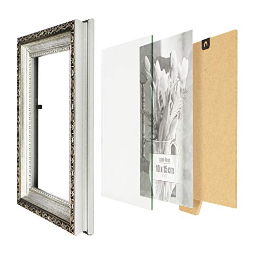 Bilderrahmen „Antik“ für die schönsten Fotos, Stilvoller Fotorahmen, Rahmen für Lieblingsbilder und Schnappschüsse Präsentieren Sie Ihre Lieblingsbilder in einem stilvollen Bilderrahmen im antiken Design! Schönes Design: Das antike Design mit modernem Touch sorgt für ein angenehmes, zeitloses Wohnambiente!Hingucker: Bilder und Fotos können nach Belieben ausgetauscht werden und sorgen somit für Abwechslung!Allrounder: Der Fotorahmen kann dank integriertem Standfuß sowohl vertikal, als auch horizontal aufgestellt werden!Cleveres Format: Die Größe des Rahmens eignet sich ideal um Portraits und Familienfotos in Szene zu setzen!Artikelmerkmale:• Maße Rahmen: 18,5 x 13,5 x 2 cm • Maße Bildformat: 10 x 15 cm (4″ x 6″) • Sichtbare Bildgröße im Rahmen: 13,5 x 8,5 cm • Material: Kunststoff • Farbe: silberfarben, dunkelbraun Kaufen Sie jetzt unsere Bilderrahmen und präsentieren Sie Ihre schönsten Fotos in einem ansprechenden Design! Bei COM-FOUR handelt es sich um eine Marke die beim Amt der Europäischen Union für geistiges Eigentum als Unionsmarke Nr. EU011758811 und Nr. EU014441703 eingetragen ist. Gemäß § 14 Abs. 2 MarkenG ist es Dritten untersagt, diese Marke im geschäftlichen Verkehr zu verwenden.