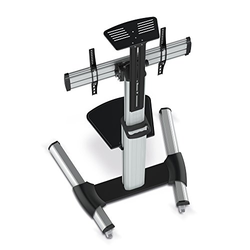 conecto TV Standfuß LM-FS02G für LCD/LED/Plasma Bildschirme von 37″ Zoll bis 70″ Zoll – 50kg Traglast, max. VESA 600x400mm, silbergrau/schwarz Der conecto Aluminium TV Standfuß LM-FS02G ist kompatibel mit LED, LCD- und Plasmafernsehern mit einem VESA Lochmaß von 200×200 bis 600×400 (ca. 37 bis 70 Zoll). Er besitzt eine maximale Tragkraft von 50kg und unterstützt die VESA Lochmaße 200×200, 300×300, 400×200, 400×400, 600×400. Der Standfuß besteht aus pulverbeschichtetem Aluminium und ist somit nicht für Korrosion anfällig. Vollbeweglich Spezielles Feature dieses Standfußes ist die 90° Drehbarkeit des angebrachten Fernsehers / Monitors (0° bis +90°) mit nur wenigen Handgriffen. Des Weiteren ist die Aufhängung des TV Geräts von +5° bis -12° neigbar, sodass der passende Neigungswinkel leicht einzustellen ist, z. B. um Reflexionen zu vermeiden. Die flexible Höhenverstellbarkeit des Standfußes ermöglicht eine fixe Arretierung in folgenden Höhen: 1200mm, 1250mm, 1300mm, 1350mm, 1400mm, 1450mm, 1500mm, 1550mm und 1600mm. Viele Features Für eine saubere und optisch ansprechende Kabelführung sorgt der integrierte Kabelkanal an der Rückseite des Standfußes. Die Mobilität wird durch vier Stück Schock-absorbierende 4″ Rollen an der Unterseite gewährleistet. So bleibt Ihr TV Gerät immer mobil und kann leicht in jeglicher Raumsituation platziert werden. Lieferumfang Im Lieferumfang des Standfußes befinden sich des Weiteren noch eine Ablagefläche mit einer max. Tragkraft von 5kg (z. B. für BluRay Player, etc.) und eine oberseitige Kamera-Ablagefläche, ebenfalls mit 5kg Tragkraft.