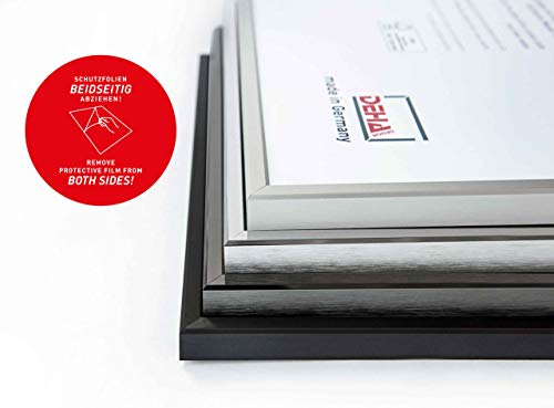 Boston, der Aluminium-Bilderrahmen der Marke Deha Design begeistert durch seinen modernen, zeitlosen Stil. Das 11 mm schmale Profil mit seinen nach außen und zum Bild hin abfallenden Kanten überzeugt in vier metallischen Oberflächen. Der elegante Rahmen bringt jedes Bild optimal zur Geltung. Die Bilderrahmen sind FSC-zertifiziert (Lizenzcode: FSC C021405) und werden in Deutschland aus hochwertigen Komponenten hergestellt. Eine bruchsichere Acrylscheibe schützt Bilder und Fotos zu 100% vor UV-Strahlen. Die stabile MDF-Rückwand mit Drehfedern bietet die Möglichkeit Bilder einfach und schnell auszutauschen. Zwei Aufhänger auf der Rückwand lassen es zu, die Rahmungen im Hoch- oder Querformat aufzuhängen. Die Einlegehöhe von 3 mm ermöglicht es ein Passepartout einzulegen, zum Beispiel ein Deha Passepartout. Alle Formatangaben beziehen sich immer auf das Maß des Bildes.Die Acrylscheibe ist beidseitig mit einer Schutzfolie versehen. Bitte vor der Nutzung des Rahmens die Folie abziehen.