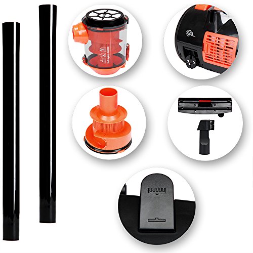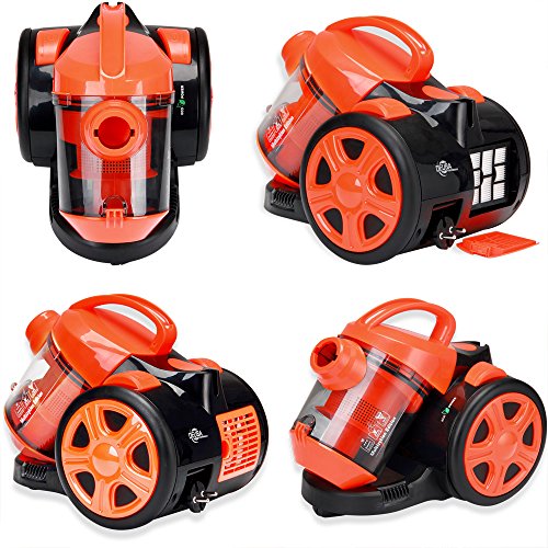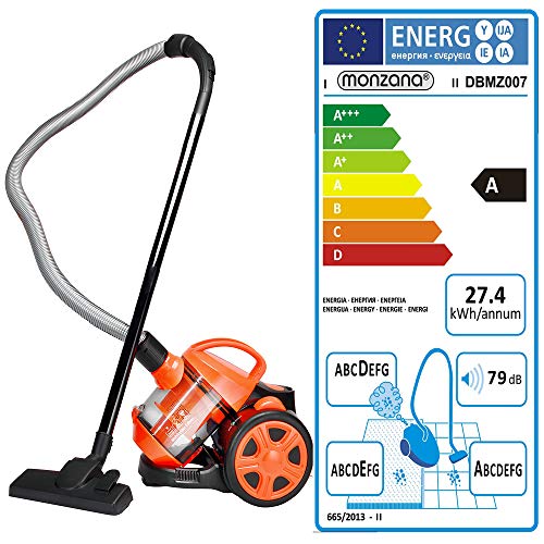 Gesteigerte Leistung bei reduziertem Stromverbrauch! Schont die Umwelt und den Geldbeutel! Der Multi Zyklon-Staubsauger arbeitet ohne Staubbeutel. Sie sparen so Zeit und Geld durch wegfallende Filterkosten. Anders als bei vielen anderen Produkten im Markt, verbraucht unser Staubsauger wenig Strom und zeigt gute Saugleistung. Durch die hohe Saugleistung und Wendigkeit wird Staub und Dreck auch in schwer zugänglichen Ecken erreicht. Dabei sorgt die 6-fache Filtrierung des HEPA-Filtersystems dafür, dass Ansaug-Partikel optimal gefiltert werden und anschließend als saubere Luft ausgeblasen werden. Durch das große 3 Liter Behältervolumen reduzieren sich die Entleerungsintervalle des Staubbehälters. Produktvorteile: – GS geprüfte Sicherheit TÜV Rheinland – max. Aktionsradius: ca. 6,5m – max. 3 Liter Behältervolumen – 6 Stufen Filtersystem – auswaschbarer HEPA-Filter – beutellose Multi Zyklon-Technologie – Saugkraftregulierung am Griff – 4m Kabellänge – 2x Kunststoffrohre je 40cm – Saugleistung ~21 ltr./sek. bei ~15kpa Unterdruck – Leichtlaufräder – 2in1 Möbel-Kombi-Bürste Technische Daten: – Material: Material: Kunststoff / Gummi – Maße: 38 cm x 26cm x 26,5cm – max. Aktionsradius: 6,5m – Nennleistung: 700W – max. Aufnahmeleistung: 900W – Kunststoffsaugrohr 2x 40cm : 78cm – Saugschlauchlänge mit Anschlussteilen 185cm – Kabellänge: 4m – Airflow: 21 ltr./sek. – Farbe: schwarz/orange – Modellnummer: DBMZ007 Lieferumfang: – 1x Staubsauger inkl. Filtersystem – Fugen-/Pinseldüse