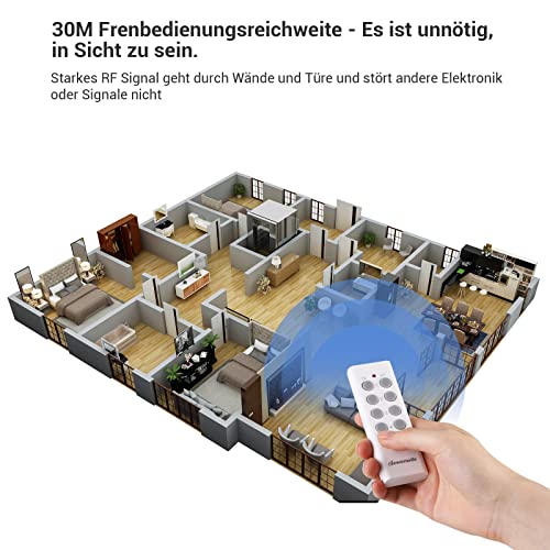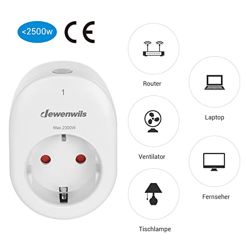 Mit einer Leistung von bis zu 2300 Watt pro Steckdose eignet sich dieses Set für eine Vielzahl von Geräten. Die 30 Meter Reichweite sorgt dafür, dass Sie Ihre Geräte bequem aus der Ferne steuern können, selbst durch Wände hindurch. Egal ob im Wohnzimmer, auf der Terrasse oder im Garten – mit den DEWENWILS Funksteckdosen haben Sie die volle Kontrolle.