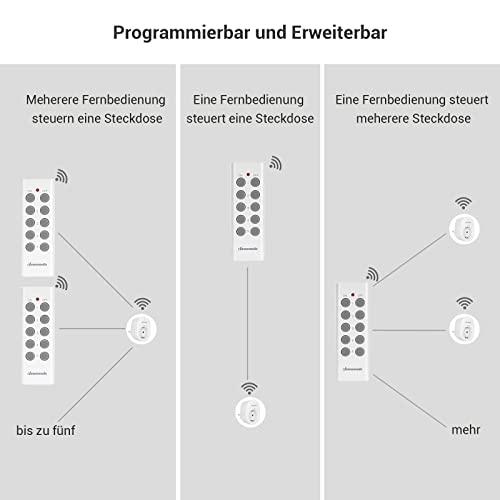Das DEWENWILS Funksteckdosen-Set ist programmierbar und kann erweitert werden, um zusätzliche Funksteckdosen zu integrieren. So können Sie Ihr bestehendes System problemlos erweitern und weitere Steckdosen in Ihr Smart-Home-System einbinden.