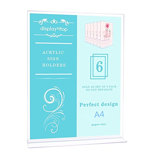Produktmaße: A4. Produktgröße: 6er-Pack. Aus transparentem Acryl. Beidseitig, ermöglicht die Sicht aus zwei Richtungen Direkte Bürolösung – stehender doppelseitiger Schildhalter – freistehend, so bleiben Schilder sicher vor Flecken und Kratzern. Gut geeignet für Einzelhändler, Restaurants, Messen, Krankenhäuser oder zur Präsentation Ihrer Schilder, Zeugnisse oder Bilder. Unser Unternehmen ist der große Hersteller, der sich auf alle Arten von Acryl-Produkten spezialisiert hat. Wir sind nicht Handelstreibende, Lieferanten oder Einzelhändler. Wir können Ihnen Großhandelspreis aber Premium Qualität und professionelle Verpackung anbieten. Hinweis: Das eigentliche Produkt ist transparent und enthält keine farbigen Seiten.