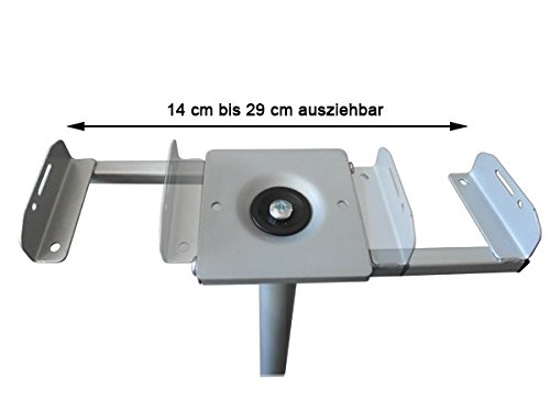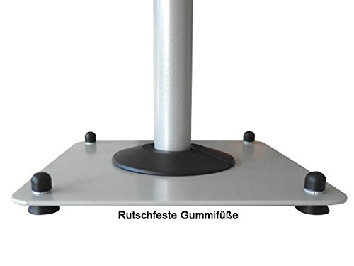 2 Boxenstative für Ihre Audioboxen. Höhenverstellbar und neigbarEgal ob Hifi-Boxen, Studiomonitore oder Wohnaccessoires – mit seiner einfachen Höhenverstellung sind diese Stativefür jeden Aufstellwunsch geeignet.Technische Daten: (pro Stück)Fußplatte: 20 x 20 cmAblageplatte: 10 x 10 cmGesamt-Auflage: 14 x 10 cmbis 29 cm ausziehbarKlemmbacken Höhe: 3 cm360° Grad drehbar± 30° Grad neigbarGewicht: 2,3 kg pro StativProdukteigenschaften: (pro Stück)Minimalhöhe: 66 cmMaximalhöhe: 118 cmstufenlos höhenverstellbarSchaumstoffkissen für die KlemmbackenInterner KabelkanalÖffnung: 1,0 x 3,0 cmTeleskopstangeRutschfeste Gummifüße(Resonanzabsorbierend)Tragfähigkeit: 5 kgFarbe: Silber metallicMaterial: MetallLieferumfang:2 Stück Boxenstative, Installationsmaterial und AnleitungDie Audioboxen dienen nur der Demonstration und sind nicht im Lieferumfang enthalten!