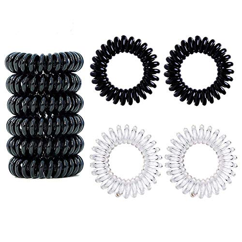 Spezifikationen: Material: No-Metal-Gummibänder Farbe: Schwarz y Transparent Menge: 12 Stück Paket beinhaltet: 12 * Elastische Haarbänder 6 Stück y 1 Größe für jede Farbe