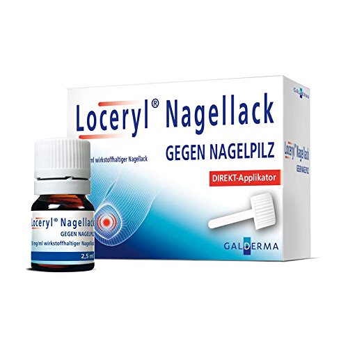 Anwendungsgebiet von Loceryl gegen Nagelpilz (Packungsgröße: 2.5 ml)Wird Nagelpilz (Onychomykose) rechtzeitig und richtig behandelt, kann er rasch bekämpft werden. Loceryl gegen Nagelpilz (Packungsgröße: 2.5 ml) hemmt nicht nur das Wachstum des Pilzes, sondern tötet ihn auch nachhaltig ab. Loceryl gegen Nagelpilz (Packungsgröße: 2.5 ml) wird dabei als farbloser Nagellack aufgetragen, der auf dem Nagel ein Wirkstoffdepot bildet. Der Nagellack ist wasser- und abriebfest. Wirkungsweise von Loceryl gegen Nagelpilz (Packungsgröße: 2.5 ml)Loceryl gegen Nagelpilz (Packungsgröße: 2.5 ml) enthält den Wirkstoff Amorolfin. Dieser zerstört den Aufbau der Zellmembran des Nagelpilzes, hemmt dessen Wachstum und tötet den Erreger ab. Loceryl gegen Nagelpilz (Packungsgröße: 2.5 ml) entfaltet dabei seine antimykotische Wirkung durch die Nagelplatte bis in das Nagelbett.Wirkstoffe / Inhaltsstoffe / Zutaten1 ml von Loceryl gegen Nagelpilz (Packungsgröße: 2.5 ml) enthält: 55,7 mg Amorolfin hydrochlorid (entspricht 50 mg Amorolfin) Sonstige Bestandteile von Loceryl gegen Nagelpilz (Packungsgröße: 2.5 ml): Ethanaol, Ethylacetat, Ammoniummethacrylat-Copolymer (Typ A), Butylacetat, TriacetinGegenanzeigenBei bekannter Überempfindlichkeit gegen einen der Inhaltsstoffe, entzündlichen Veränderungen in der Umgebung der Nägel, Zuckerkrankheit, Durchblutungsstörungen, Fehlernährung, Alkoholmissbrauch sowie bei Säuglingen und Kindern sollte dieses Produkt nicht angewendet werden.DosierungAnwendungsempfehlung von
