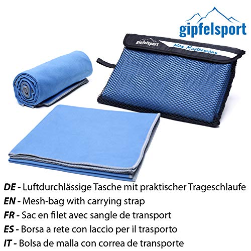 Kennst du das auch? In deinem Koffer ist nie genug Platz? Dein Handtuch nimmt den Großteil deiner Sporttasche ein? Große Frotte-Handtücher erschweren den Gang zum Strand oder die Reise in die Natur? Das Handtuch ist noch klamm vom Vortag? Das muss nicht so bleiben! Gipfelsport hat die Lösung für deine Probleme. Das platzsparende Outdoor Handtuch von gipfelsport ist dein perfekter Begleiter beim Sport, Baden, Reisen, Camping oder Wandern. Deine Vorteile: FÜR JEDEN GEEIGNET – Für Frauen, Männer, Senioren, Kinder, Herren, Damen, Mädchen oder Jungen. SCHNELL TROCKEN – die Mikrofaser sind sehr saugfähig und trocknen schnell, dadurch werden leichter unangenehme Gerüche vermiedenFÜR JEDEN GEEIGNETE – Für Frauen, Männer und Kinder geeignet UNIVERSELL EINSETZBAR – ob beim Sport, auf Reisen, in der Sauna, in der Natur beim Camping oder Wandern, oder im Urlaub am Strand – das Handtuch erfüllt überall seinen Zweck PERSONALISIERT – die Tasche besitzt ein Namensfeld, um zu verdeutlichen, wem das Handtuch gehörtANTIBAKTERIELL und SCHMUTZABWEISEND – das hautfreundliche und weiche Material ist auf die Bedürfnisse von Sportlern angepasst
