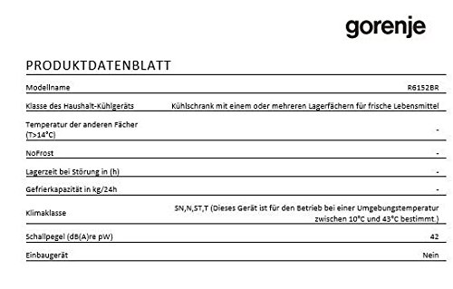 Energieeffizienzklasse: A++ Farbe: Vulcano Red (Rot) Informationen zu Energieeffizienz und Verbrauchswerten Hersteller: GORENJE Modell: 419024 a. Kühlen / Gefrieren: Energieeffizienzklasse: A++ auf einer Skala von A+++ (höchste Effizienz) bis D (geringste Effizienz) b. Kühlen / Gefrieren: jährl. Energieverbrauch (Aec): 108,00 kWh/Jahr c. Nutzinhalt gesamt in l: 302 LiterNutzinhalt Kühlteil in l: 302 LiterNutzinhalt Gefrierfach in l: keine AngabeSternekennzeichnung Gefrierfach: keine AngabeNutzinhalt Gefrierteil in l: keine AngabeSternekennzeichnung Gefrierteil: keine AngabeSeparates Fach mit anderer Temperatur: keine Angabe d. Klimaklasse: SN-T e. Kühlen / Gefrieren: Luftschallemissionen (dB): 42,00 dB(A) re 1 pW f. Kühlen / Gefrieren: Einbaugerät: nein