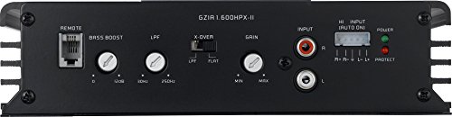 Ground Zero GZIA 1.600HPX-II | 600 Watt RMS | Monoblock Ausstattungsmerkmale – 4 Ohm / 2 Ohm stabil Stereo – 1 Ohm stabil Mono – Einschalt- und Schutzanzeige – Bass Boost – Tiefpass regelbar – Auto-On @ High Level Input – Regelbare Eingangsempfindlichkeit – Einschaltverzögerung – Bass Lautstärkeregler – Temperatur / Kurzschluss / Überlast-Schutz Technische Daten *Die WRMS Leistungsangaben basieren auf dem CEA Standard CEA-2006-A ( 14.4V, 1% THD) ModellGZIA 1.600HPX-IITyp1 Ch Class ABAusgangsleistung @ 4 Ohm (CEA*)1 x 230 WAusgangsleistung @ 2 Ohm (CEA*)1 x 400 WAusgangsleistung @ 1 Ohm (CEA*)1 x 600 WBrückenleistung @ 4 Ohm (CEA* / 10% THD)-Brückenleistung @ 2 Ohm (CEA* / 10% THD)-Ausgangsleistung linkmode 2 Ohm-24 Volt Gerät-18 Volt stabil-Lowpass30 – 250 HzHighpass-Bandpass-Subsonic-Bassboost0 – 12 dB (45 Hz)Phaseshift-Regelbarer Q-Faktor-Variables Bias Setting-Bass remoteInklusive / InclusiveHigh Level inJa, mit Auto On / Yes, with Auto OnLine Out-Beleuchtung-Abmessungen cm / Inch19,2 x 4,9 x 36 cm / 7.56' x 1.93' x 14.17'