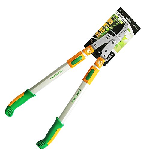 Die funktionelle und scharfe 7-fach verstellbare Teleskop-Amboss-Astschere TX 27/40 von GRÜNTEK ist speziell für leichte und saubere Schnitte geeignetzum Schneiden von frischem Grün bis 51 mm Durchmesser und trockenem Holz bis 48 mm;Dank einer kraftvollen Hebelübersetzung direkt an der Klinge der Grüntek Amboss Baumschere, erreicht der Gartenliebhaber eine mehrfache Verstärkung der Schneidleistung und ermöglicht ein kraftsparendes und armschonendes Schneiden von trockenem Holz und frischen Ästen ————————————————— Gesamtlänge: 685 – 1015 mmKlinge: 78 mmGewicht: 1680 Gr. ============================ + Scharfe obere Klinge aus gehärtetem Werkzeugstahl mit guter Schärfbarkeit, spezieller Antihaftbeschichtung und Präzisionsschliff + Die ovalen teleskopierbaren Aluminium-Hebelarme mit bequemen rutschfesten 2-Komponenten Griffen und abgerundeten Ecken minimieren Belastungen bei längerem Einsatz + Angenehme Handlage für Links- und Rechtshänder, das gute Gleichgewicht der Konstruktion sorgt für weniger Kraftaufwand beim kraftvollen und fachgerechten baumschonenden Schnitt