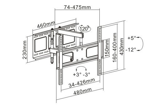 Hochwertige HALTERUNGSPROFI Premium Halterung aus Stahl für Ihren flachen LCD oder LED TV. Mit dieser Halterung können Sie Ihren LCD, LED oder Plasma TV einfach und sicher montieren und flexibel ausrichten. Top Features: – Hochwertige Verarbeitung – Wandabstand von 7,4 cm bis 47,5 cm – Um 120° schwenkbar, 15° nach oben oder unten neigbar (volle 120° nur bei TV-Geräten mit max. 80 cm Breite möglich!) – horizontaler Ausgleich um /- 3° möglich – einfache Montage – doppelte Sicherheit durch die Zweiarmkonstruktion – Material: Stahl – geeignet für alle gängigen LED Geräte mit VESA 200×200, 300×300, 200×400 und 400×400 Lieferumfang: Wandhalterung, vollständiges Montagematerial, hochwertige Markendübel Bitte überprüfen Sie vor dem Kauf die Kompatibilität der Wandhalterung mit Ihrem Monitor / Fernseher (Abstand zwischen den Lochbohrungen auf der Geräterückseite): Horizontaler maximaler Lochabstand 400mm Vertikaler maximaler Lochabstand 400mm Nur wenn Ihr Gerät einen Lochabstand von maximal 400x400mm (VESA 400) aufweist, kann das Gerät befestigt werden. Größere Lochabstände können nicht befestigt werden. Achtung: Bestimmte Sony TV-Modelle mit unebener Rückseite benötigen für die Montage an einer Halterung einen VESA-Adapter. Dieser kann über die Sony-Kundenhotline bestellt werden.