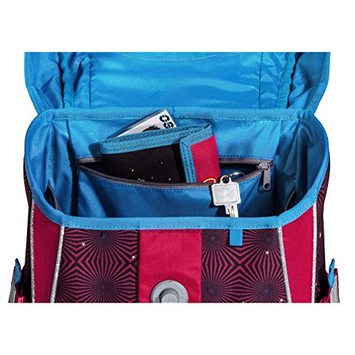 – Easy Elastic-Rückensystem aus Fiberglas für optimale Formstabilität und perfekte ergonomische Passform – Mesh Back Cooling-System – optimale Luftzirkulation durch spezielles Netzmaterial an der Rückenpolsterung – Verstellbare und ergonomische Schultergurte mit Polsterung und Gurtendeneinhängung – Lageverstellriemen – Abnehmbarer, höhenverstellbarer Brustgurt für zusätzliche Stabilität – Befestigungsmöglichkeit für optionalen, weich gepolsterten Hüftgurt (separat erhältlich) für eine noch bessere Lastenverteilung weg vom Rücken auf den stabilen Beckenbereich – Stundenplanfach mit integriertem Stundenplan unter dem Deckel – Flexibler Inneneinteiler im Hauptfach mit Platz für DIN A4-Ordner, ermöglicht eine körpernahe Positionierung von schwereren Gegenständen – 2 offene Seitentaschen – Isolierte Thermo-Fronttasche mit Reißverschluss – Magnetverschluss – kinderleicht zu bedienen – Praktischer Tragegriff auf der Oberseite – Retroreflektierendes ORALITE-Material für erhöhte Sicherheit im Straßenverkehr – Stabile Bodenplatte mit Standfüßen schützt vor Schmutz und Nässe – Plastische Applikationen und/oder hochwertige Stickereien mit viel Liebe zum DetailBreite: 29Höhe: 37.5Länge: 21Volumen: 18warranty: 2 Jahreweight: 0.9Material: Polyester