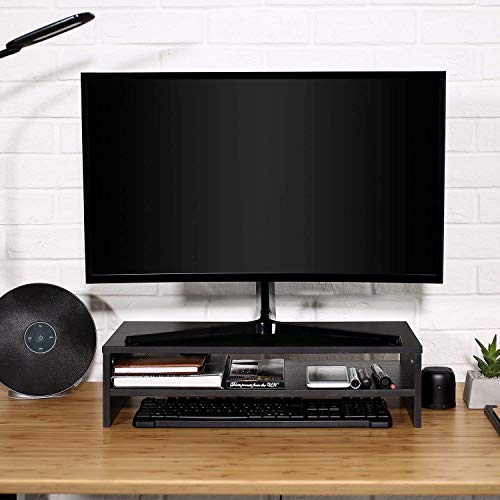 Homfa Möbel-System erlaubt es Ihnen, Ihr sehr persönliches Möbel zusammenzustellen. Ein individueller Monitorständer wird mit Homfa ganz nach Ihren Wünschen und Vorstellungen kreiert, was Ihren Bedürfnissen gerecht wird und sich in dem zur Verfügung stehenden Platz umsetzen lässt. Ob in Geschäftsräumen oder in Ihrem privaten Wohnraum – Homfa ist immer ein dekorativer Blickfang. Multifunktional Die Größe des Bilrschirmständers ist genug für alle Typen von Computer. Nicht nur für Computer, sondern auch für andere Bildschirme und andere geeignet. Dank der Höhe können Sie sowohl auf dem Bett als auch auf dem Schreibtisch den Laptopständer benutzen. Duchdachtes Design Die Farbe ist mordern und passt in viele Räume. Schwarz und Weiß auswählbar. Ganz nach Ihren Bedürfnissen. Die Mittelplatte kann als Schublade benutzen und ist benutzerfreundlich. Hochwertiges Matertial mit großer Belastbarkeit Die Monitorerhöhung ist mit einer Dicke von ca. 12mm und kann das Gewicht von ca. 15 kg tragen. Produktdetails: -Farbe: Schwarz/Weiß -Maximale Belastbarkeit: ca. 15 kg -Maße: 54x 25,5 x 14cm (B x H x T) Lieferumfang: Platten Aufbauanleitung (DE, EN) Beschlagbeutel