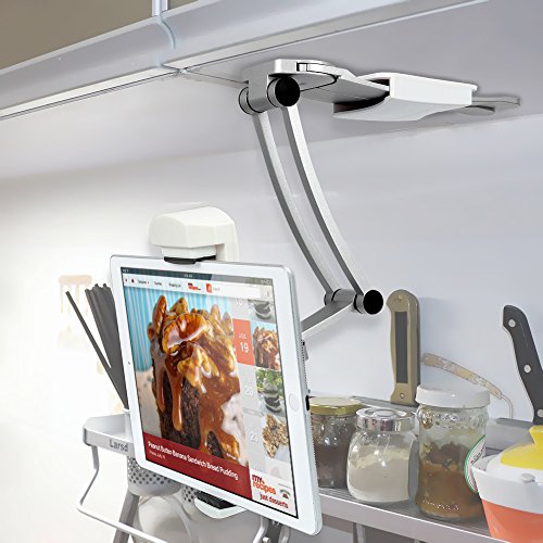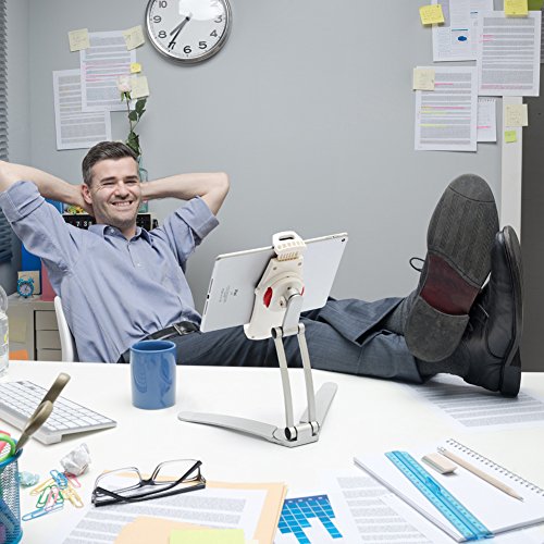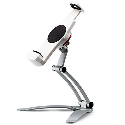 Überzeugen Sie sich selbst von unserer 2-in-1 Tablethalterung! Entweder im Büro oder zu Hause können unsere Monitohalterung leicht befestigt werden. Eingenschaften: – 2 Montageplatte ermöglicht die Befestigung an der Wand oder am Kabinett – Der Halter ist schwenkbar zum vertikalen oder horizontalen Winkel – Die Höhe ist durch die Gelenke auf dem Arm verstellbar – Aus Aluminium mit hoher Qualität gefertigt – Die Füße können eingestellt werden – Einfach zu betreiben – Faltbar somit bequem zum Aufbewahren – Lieferumfang: Aluminum Ständer*1, Tablethalter*1, Weiße Montageplatte*2, Bauteil Set*1 Spezifikation: – Armlänge: 10.24 Zoll / 26 cm – Gewicht: 957 g – Abmessung der Füße: 5 x 3.15 x 0.79 Zoll / 12.8 x 8 x 2 cm – Passend für Breite des Gerät von 5.7 bis 8.1 Zoll ( 14.5 – 20.5 cm) Beliebte Tabletmodelle als Referenz: Apple: iPad Mini 4, Pro, Mini 3, Air 2, Air, Mini 2, 4, Mini 1st Generation, 3 / 2 / 1st Generation. Dell: Venue 11 Pro 5000, 10 / 10 Pro, 8, 7 Microsoft: Surface Pro 4, 3, Pro 3, Pro 2, 2, Pro, Surface. Samsung: Galaxy Kids Tab 3 Lite 7.0, Tab E 9.6, Tab S2 9.7, Tab S2 8.0, Tab Active 8.0, Tab A with S Pen 9.7, Tab A 8.0, Tab A 9.7, Tab 4 NOOK 10.1, Tab 4 NOOK 7.0, Tab S 10.5, Tab S 8.4, Tab 4 10.1, Tab 4 8.0, Tab 4 7.0, Tab 3 Lite, Note Pro 12.2, Tab Pro 12.2, Tab Pro 10.1, Tab Pro 8.4, Note 10.1 usw. Achtung: *Tablet ist nicht enthalten.