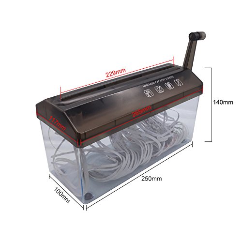 Manueller Aktenvernichter für Blätter A4, Handkurbel Aktenvernichter für Büro Schule Zuhause, für Papier und Dokumenten, Streifenschnitt Spezifikationen: Mini-Papier-Shredder Material: ABS Form des Fragment: Strip-Cut Breite der Streifen: 3 mm Paket enthalten: 1 * Manueller Aktenvernichter