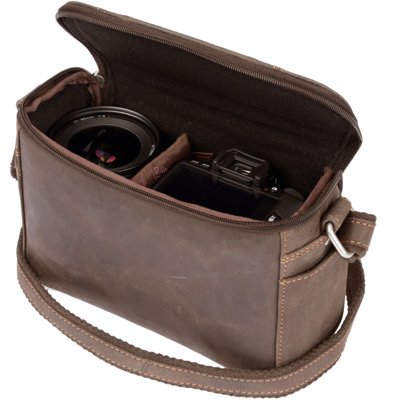Produktbeschreibung Diese formschöne Fototasche aus robustem Büffelleder wurde speziell für das Systemkamera-Segment entwickelt. Die ausgewogenen Innenmaße für ein Maximum an Platzangebot mit variablen Trennwänden in Verbindung mit einer minimal nötigen Gesamtgröße passen sich den kompakten Kamerasystemen perfekt an. Selbst zusätzliche Objektive und weiteres Zubehör finden hier Platz. Der große Deckel mit Reißverschluss öffnet vom Körper weg und bietet so einen unkomplizierten und schnellen Zugriff zur Kamera. Schmale Zubehörfächer an der Front, der Seite und auf dem Deckel nehmen Speicherkarten und Visitenkarten auf. Abmessungen: Innen (BxHxT) 21x14x10cm, Gewicht: 490g Set enthält: Tasche;Klettinneneinteilung