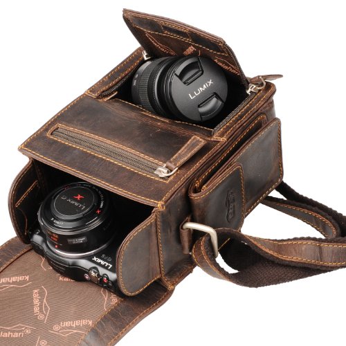 Produktbeschreibungen Die KAAMA Fototaschen von kalahari sind aus hochwertigem Büffelleder gefertigt und werden Sie ein Leben lang begleiten. Durch das naturbelassene Leder, das nur ölgewaschen und ungefärbt ist, wird jede Tasche zum Unikat. Je länger Sie diese Tasche haben umso schöner wird sie. Diese Kalahari Taschen sehen nicht nach Fototasche aus und müssen auch nicht nur Fototasche sein! Die besonders pfiffige, äußerst handliche Hochformat-Tasche wurde speziell für die kompakten spiegellosen Systemkameras entwickelt. Sie ist mit ihren Innenmaßen von nur 170mm (L) x 125mm (H) x 85mm (B) sehr kompakt. Dank der zwei Etagen ist sie dennoch äußerst geräumig. Der Überwurfdeckel besitzt einen Magnetverschluss. In die obere Etage passt eine Kamera mit maximaler Gehäusegröße von 130 x 85mm (z.B. Sony NEX 7, Panasonic Lumix G5 etc.) und angesetztem Setobjektiv. Die untere Etage lässt sich nach vorne öffnen und ist mit Reißverschlüssen und Magnetverschluss gesichert. Sie bietet wahlweise Platz für ein großes Objektiv (max. 130mm Länge und 75mm Durchmesser), zwei kleinere Objektive (max. je 85mm Länge und 65mm Durchmesser) oder ein Blitzgerät. Wird die Trennwand zur unteren Etage entfernt, dann findet in der Tasche mit einer Höhe von maximal 170mm auch eine Kamera mit langem Zoom ihren Platz. Deckellaschen verhindern das Eindringen von Regenwasser. Außerdem befindet sich darin jeweils ein SD-Karten Fach. Ersatzakku und Reinigungstuch passen in die kleinen Seitenaschen. Amazon.de Kalahari Fototasche KAAMA L-18 Die KAAMA Fototaschen von kalahari sind aus hochwertigem Büffelleder gefertigt und werden Sie ein Leben lang begleiten. Durch das naturbelassene Leder, das nur ölgewaschen und ungefärbt ist, wird jede Tasche zum Unikat. Je länger Sie diese Tasche haben umso schöner wird sie. Diese Kalahari Taschen sehen nicht nach Fototasche aus und müssen auch nicht nur Fototasche ein! Die besonders pfiffige, äußerst handliche Hochformat-Tasche wurde speziell für die komp