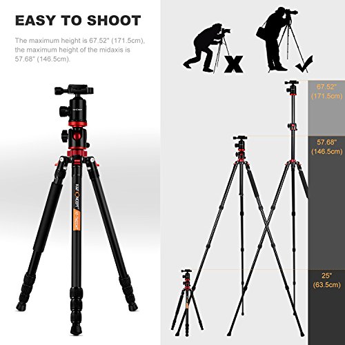 Warum sollten Sie sich für einen K&F Concept 90 Grad Mittelsäulen Stativ entscheiden?1.Alle Produkte sind sorgfältig ausgearbeitet um durchgehend gleichmäßige Qualität zu bieten. 2.Alle Produkte von uns sind hochwertig und mit dem besten Service.Eigenschaften von diesem Kamera Stativ 1. Das K&F Concept Stativ ist der perfekte Begleiter für die Reise.Platzsparend durch ein geringes Packmaß und leicht durch die stabile Aluminium-Konstruktion stellt sich der Traveller den wichtigsten Herausforderungen eines Reisestativs, das auch dem professionellen Anspruch gerecht wird. 2. 90 Grad Mittelsäulen: Der 90 Grad Mittelsäulen-Mechanismus ist platzsparend in der Stativschulter versteckt und ermöglicht bei Bedarf die Verlagerung der Mittelsäule von der Vertikalen in die Horizontale mit nur einem Finger. Die 90 Grad Mittelsäule und die vier Beinanstellwinkel ermöglichen in der Kombination eine extrem niedrige Bodenhöhe. 3. Kippstabil – Auf Stock und Stein, bei Wind und Wetter 4. Hohe Kippstabilität und Sicherer Stand: Drei mögliche Einstellwinkel der Stativbeine, Gummifüße,90 Grad höhenverstellbare Mittelsäule mit Beschwerungshaken, Wasserwaage, funktionelle Schraubklemmen 5. 360 Grad Panoramadrehung mit Gradskala durch 3D-Kugelkopf, Ausrichtung für Hoch- und Querformat, Schnellwechselplatte mit Gummiauflage, Retrostellung, rutschfeste Schaumstoffgriffe6.Dreibeinstativ mit Einbeinstativ-FunktionSpezifikation von Diesem Tripod Gefaltete Länge: 47cm Min./Max. Aufbauhöhe Dreibeinstativ: 37.5-183.5cm Segmente: 4 Gewicht: 1.58kg Max. Belastbarkeit: 8kg 360 Grad Panoramadrehung mit Gradskala durch 3D Kugelkopf SchnellwechselplatteAnschluß:1/4″-StativkopfschraubeMax Rohrdurchmesser: 25mm Lieferumfang 1×90 Grad Mittelsäulen Stativ 1x Tragtasche 1x Strap 1x Tasche für Kugelkopf
