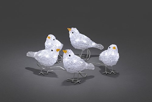 Energieeffizienzklasse: A, 3kWh/1000h, LED Acrylfigur Vögel 5er Set, für Außen (IP44), 24V Außentrafo, 40 kaltweiße Dioden, transparentes KabelMit der detailreich gestalteten Lichtgestalt von Konstsmide verwandeln Sie Ihre Gartendeko in ein magisches Winterwunderland. Die hochwertigen Acryl-Vögel im 5er Set versprüht ebenso viel Charme wie effektvolles Licht durch 40 kalt we