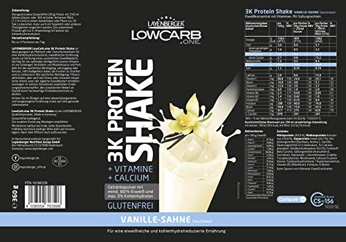 Anwendungsgebiet von Layenberger Lowcarb.one 3k Protein Shake Van.-sah. (Packungsgröße: 360 g)Layenberger Lowcarb.one 3k Protein Shake Van.-sah. (Packungsgröße: 360 g) ist ein leckerer Shake für eine eiweißreiche und kohlenhydratereduzierte Ernährung, basierend auf den neuesten wissenschaftlichen Erkenntnissen und fein abgestimmten, modernen Rezepturen. Die hohen Chemical Score Werte in Layenberger Lowcarb.one 3k Protein Shake Van.-sah. (Packungsgröße: 360 g) werden durch den Einsatz sehr hochwertiger Milch-, Molken- und Sojaproteine erreicht. Angereichert ist Layenberger Lowcarb.one 3k Protein Shake Van.-sah. (Packungsgröße: 360 g) mit Vitaminen und Calcium – enthält viele hochwertige Eiweiße. Layenberger Lowcarb.one 3k Protein Shake Van.-sah. (Packungsgröße: 360 g) ist speziell geeignet zur bestmöglichen Regeneration der Muskeln vor und nach dem Training, eignet sich auch als Teil einer Low-Carb-Diät oder um sich dauerhaft mit wenig Kohlenhydraten zu ernähren. Wirkungsweise von Layenberger Lowcarb.one 3k Protein Shake Van.-sah. (Packungsgröße: 360 g)Layenberger Lowcarb.one 3k Protein Shake Van.-sah. (Packungsgröße: 360 g) ist ein fein abgestimmter, mit Vitaminen und Calcium angereicherter Protein-Mix, leicht bekömmlich und besonders lecker im Geschmack. Layenberger Lowcarb.one 3k Protein Shake Van.-sah. (Packungsgröße: 360 g) ist ideal geeignet als Mahlzeit oder Zwischenmahlzeit für eine kohlenhydratreduzierte, eiweißreiche Ernährung, sowie zur Deckung eines zusätzlichen Eiweißbedarfs. Wirkstoffe / Inhaltsstoffe / ZutatenZutaten