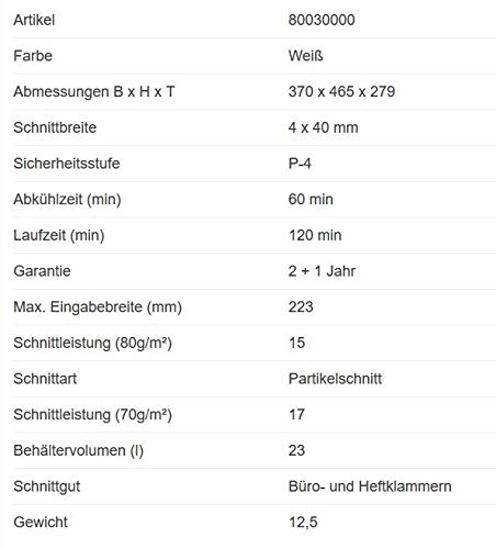 | Typ | Aktenvernichter - Kreuzschnitt |