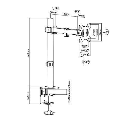 Marke Maclean hatte bereits beim Markteinstieg eine Vielzahl von zufriedenen Kunden. Die Marke ist weltweit bekannt für seine Qualität, Innovationskraft, Service und Zuverlässigkeit der Produkte. Mitlerweile ist Maclean in Europa ein Branchenführer. Monitor Tischhalterung ist eine perfekte Lösung für mehr Platz auf dem Schreibtisch. Neigbar, schwenkbar und rotierbar Die Monitorhalterung ist frei verstellbar und bietet somit maximale Flexibilität für den Einsatz im Büro zu Hause. Monitorhalterung passt für Bildschirmdiagonale von 13″ bis 32″ mit einem Gewicht bis 8kg. Geeignet für alle Marken mit VESA-genormtem Lochabstand von 75×75 und 100×100. Sehr einfache Installation ohne Bohren! Sie können die Halterung sowohl via Tischklemme an einem Tisch-Rand befestigen, als auch per Tischlochmontage in einem beliebigen Bereich der Tischplatte. Die Kabelführung sorgt für Ordnung auf dem Schreibtisch.