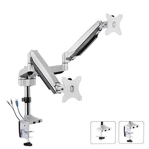 Marke Maclean hatte bereits beim Markteinstieg eine Vielzahl von zufriedenen Kunden. Die Marke ist weltweit bekannt für seine Qualität, Innovationskraft, Service und Zuverlässigkeit der Produkte. Mitlerweile ist Maclean in Europa ein Branchenführer. Mit dieser hochwertigen Halterung von Maclean können Sie zwei Monitore nebeneinander Montieren. Dank ihrer massiven konstruktion bietet die Monitor-Halterung einen sicheren Halt. Außerdem befindet sich ein USB-Hub mit USB 3.0 Port direkt am Fuß der Halterung. Monitorhalterungen passen für Bildschirmdiagonale von 13″ bis 32″ mit einem Gewicht bis 9kg (pro Halterung). Geeignet für alle Marken mit VESA-genormtem Lochabstand von 75×75 und 100×100. Maximale Flexibilität – durch Ferderarm Die zwei Monitorhalterungen sind individuell verstellbar Jeder Monitorarm kann bis zu 360 Grad in jede Richtung gedreht werden. Sie können die Halterung auch einfach auf die richtige Höhe stufenlos einstellen (von 0 bis 57cm) Gleichzeitig haben Sie die Möglichkeit, die Neigung von -90° bis 90° einzustellen. Sehr einfache Installation ohne Bohren! Sie können die Halterung sowohl via Tischklemme an einem Tischrand befestigen, als auch per Tischlochmontage in einem beliebigen Bereich der Tischplatte.