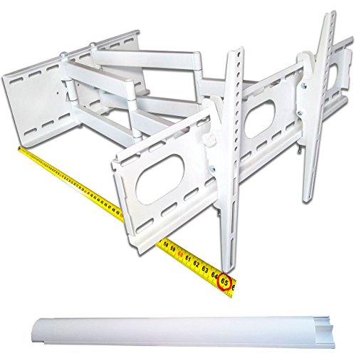max Wandabstand 65 cm, min 10 cm , Alle Gelenke sind geschweißt. Universelle Schwenkbare TV-Wandhalterung mit Doppelarm, ausziehbar, neigbar, in M&G-Techno – Herstellerqualität. Die Halterung für alle TV mit Diagonal bis zu 177 cm (70 Zoll) geeignet. TV-Wandhalterung in M&G-Techno-Herstellerqualität für schwere TV Geräte ab 12 kg Montieren Sie Ihren Flachbild-Fernseher oder PC-Monitor einfach platzsparend an der Wand. Die Wandhalterung ist für den idealen Blickwinkel in der Neigung verstellbar. Mit unserer stabilen TV-Wandhalterung in M&G-Techno-Herstellerqualität montieren Sie Ihren Fernseher einfach und bequem an jeder Wand. M&G-Techno-Deutschland. Bei Zahlungseingang bis 17 Uhr versenden wir noch heute. Kostenlos. Immer mit DHL. Geeignet für Flachbild-Fernseher oder PC-Monitore mit bis zu 180 cm Bildschirmdiagonale (70 Zoll), bzw. VESA-Lochabständen von max. 660 x 400 mm. Technische Daten – Ausfahrbar, Entfernung zur Wand ca.min.10 cm, max. ca.65 cm- Alle Gelenke sind geschweißt. Mit KABELKANAL- geeignet für alle TV-Flachbildschirme und Monitore mit Diagonal 82 -177 cm (32-70″)- Wandhalterung mit Doppelarm, ausziehbar, schwenkbar, Neigung ca. +/- 15°- Vertrauen Sie auf unsere bewährte M&G-Techno-Herstellerqualität. – Material: Stahl, Farbe: Weiß, doppelte Pulverbeschichtung Lieferumfang – Wandhalterung für TV Flachbildschirm- Kabelkanal ca.45 cm- Befestigungsmittel- Anleitung- Wasserwaage als Montagehilfe