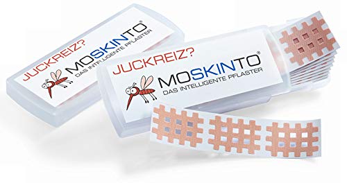 Juckreiz nach Insektenstichen? Kleben Sie das MOSKINTO Pflaster direkt auf den Insektenstich, ohne vorher zu kratzen. Nach unseren Kundenerfahrungen lässt der Juckreiz häufig nach und kann nach 20 Minuten nicht mehr vorhanden sein. Das Pflaster kann auf der Haut bleiben bis es nach ca. 4-7 Tagen abfällt. Nicht auf offene Wunden kleben! Die Pflaster sind aus Polyester und Polyurethan hergestellt, sie weisen eine Gitterform auf und sind mit einem hautfreundlichen Acrylatkleber beschichtet. Das Produkt enthält keine Inhaltsstoffe und ist frei von Medikamenten & Wirkstoffen. Bei Bienenstichen sollte der Stachel vorher aus der Haut entfernt werden. (Nicht bei allergischen Reaktionen anwenden!). Die Wirkung der Moskinto Pflaster ist nicht wissenschaftlich bewiesen, daher basieren unsere Aussagen auf unsere jahrelangen Erfahrung und verschiedene Fallstudien. Gibt es Nebenwirkungen? Allergische Reaktionen oder Nebenwirkungen treten nur sehr selten auf und sind oft bedingt durch eine aktuelle Medikamenteneinnahme oder durch verstärkten gleichzeitigen Alkohol- oder Nikotingenuss. Im Zweifelsfall halten Sie bitte Rücksprache mit Ihrem Arzt oder Apotheker.