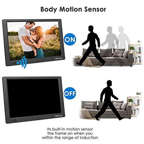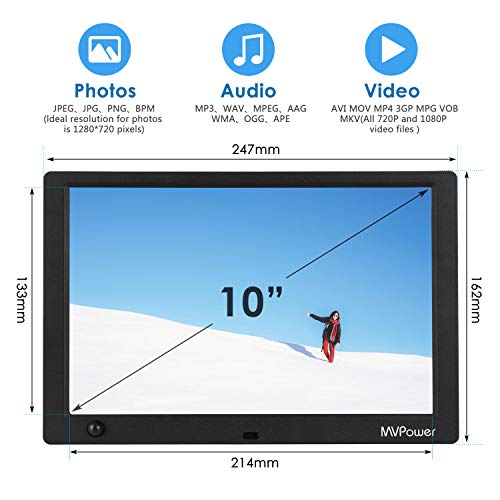 Produktbeschreibung: Im Vergleich zu herkömmlichen Fotorahmen stellt die dauerhafte Speicherung der Fotos den größten Vorteil dar. Die Fotos werden im Laufe der Zeit nicht gelb und veralten, und die Anzeige wirkt realistischer. Der digitale Fotorahmen verfügt über ein benutzerfreundlicheres Design mit Musikwiedergabe, Videowiedergabe, Kalender, Uhr usw. Eigenschaft: Sensorfunktion des menschlichen Körpers: Bewegungssensor: Bringen Sie benutzerfreundlichere Kontrolle. Damit ist dieser digitale Bilderrahmen energiesparend und umweltfreundlich Zeiteinstellung: 20 s / 30 s / 1 min / 5 min / 10 min / 15 min / 30 min / 1 h / 4 h Wenn man nicht weiter als 2,5 Meter vom Bilderrahmen entfernt ist, schaltet sich das Gerät automatisch an. Wenn man weiter als 2,5 Meter vom Bilderrahmen entfernt ist, wird sich das Gerät gemäß der eingestellten Zeit ausschalten. Produktinformation: Fotoformat: JPEG10000 * 10000, JPG 10000 * 10000, BMP 10000 * 10000 Videoformate: AVI, MOV, MP4, 3GP, MPG, VOB, MKV Audioformate: MP3, MPEG, AAC, WMA, OGG, APE, WAV Maximale Auflösung mp3 (44, 1 kHz Abtastrate Bitrate; 32k-320kpbbs) Speicherkarte: Unterstützt USB-Stick, SD-Karte, SDHC (bis zu 32 G) (dieses Produkt enthält keine der drei Speicherkarten) Fernbedienung: eingebaute CR2025 3V Knopfbatterie Fernsteuerungsabstand: 3.5-6 m AC: 100-240v 50/60HZ DC: 5v/1.5A Überstromschutz: 2.1A Welligkeit: 70mv Energieeffizienz: 72% – 76% Sensor: 2-2,5 m Lieferumfang: 1 x 10 Zoll digitaler Bilderrahmen 1 x Ständer 1 x Fernbedienung 1 x AC-Netzteil 1 x Anleitung