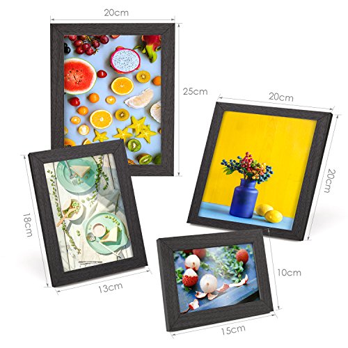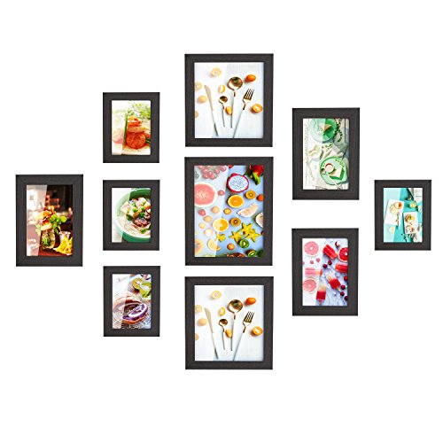 Bilderrahmen Set für 10 Fotos mit folgenden Größe: -4x 10x15cm -3x 13x18cm -2x 20x20cm -1x 20x25cm Technische Daten: – Material: MDF + Glas – Farbe: schwarz/weiß – Einzelrahmen Größe: 4x 18*13*1.2cm 3x 21*16*1.2cm 2x 23*23*1.2cm 1x 28*23*1.2cm Lieferumfang: – 1 x 10er Frame Set für 10 Fotos – 1 x Bedienungsanleitung