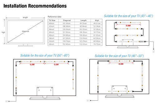 Einzelteil-Name: geführtes Streifen für 40 bis 60 Fernsehapparat tv hintergrundbeleuchtung,led tv hintergrundbeleuchtung usb Mit 16 Farben und 4 dynamischen Modus für 40-60 Zoll tv, Farben und Helligkeit kann durch die Fernbedienung gedimmt werden. Eigenschaften: -Ein- und Ausschalten mit TV ein / aus – Flexible und vorgeschnittene: vorgestanzte Ausführung, einfach den LED-Streifen mit dem Stecker verbinden. – Sicherheit: USB 5V ,die LED-Streifen ist nicht wasserdicht – geringer Verbrauch: super helle LED, 36LED, Sparen Sie bis zu 85% Energie, 50000hrs Lange Lebensdauer. Paket enthalten: – 4 x 50cm / 1,64ft LED-Streifen – 3 x 10cm / 0.32ft konten für LED-Streifen – 1 x 50cm / 1,64ft USB-Kabel – 1 x 24 Schlüssel Fernbedienung. – 1 x manuell Anwendungen: – für tv backlighting – LED-Streifen für TV-Monitor, PC-Bildschirm – Akzentbeleuchtung – Küchenbeleuchtung führte Unterkabinett Licht – Spiegelbeleuchtung Nach Dienst: Wir versichern, jedem Kunden eine nicht-Risiko-Kauferfahrung unseres geführten Streifens für Fernsehapparat zu geben, also mailen Sie uns bitte durch Amazon direkt, wenn Sie irgendwelche questions.we haben, geben Ihnen Lösung durch Rückerstattung oder Wiedereinbau ohne jede Entschuldigung.