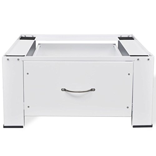 Dieser Sockel kann dazu verwendet werden, um Ihre Waschmaschine oberhalb des Bodens zu platzieren und auf eine geeignetere Arbeitshöhe anzuheben, sodass Sie sich nicht zu sehr bücken müssen, um die Waschmaschine mit Ihrer Wäsche zu beladen oder diese daraus zu entnehmen. Der Sockel ist aus Stahl und kann eine Waschmaschine mit einem Gewicht von bis zu 100 kg tragen. Dank der rutschfesten Pads steht die Waschmaschine stabil. Die Füße sind ebenfalls gummiert, sodass sie nicht wegrutschen können und verhindert wird, dass Ihre Böden zerkratzt werden. Der Sockel bietet auch eine geschlossene Schublade für zusätzlichen Stauraum. Kinderleichter Zusammenbau. Farbe: Weiß Material: Stahl Gewicht: 10,2 kg Abmessungen: 63 x 54 x 31 cm (B x T x H) Tragfähigkeit: 100 kg Passend für alle Standard-Waschmaschinen Mit rutschfesten Pads Gummierte Füße Mit einer Schublade