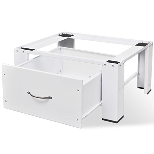 Dieser Sockel kann dazu verwendet werden, um Ihre Waschmaschine oberhalb des Bodens zu platzieren und auf eine geeignetere Arbeitshöhe anzuheben, sodass Sie sich nicht zu sehr bücken müssen, um die Waschmaschine mit Ihrer Wäsche zu beladen oder diese daraus zu entnehmen. Der Sockel ist aus Stahl und kann eine Waschmaschine mit einem Gewicht von bis zu 100 kg tragen. Dank der rutschfesten Pads steht die Waschmaschine stabil. Die Füße sind ebenfalls gummiert, sodass sie nicht wegrutschen können und verhindert wird, dass Ihre Böden zerkratzt werden. Der Sockel bietet auch eine geschlossene Schublade für zusätzlichen Stauraum. Kinderleichter Zusammenbau. Farbe: Weiß Material: Stahl Gewicht: 10,2 kg Abmessungen: 63 x 54 x 31 cm (B x T x H) Tragfähigkeit: 100 kg Passend für alle Standard-Waschmaschinen Mit rutschfesten Pads Gummierte Füße Mit einer Schublade