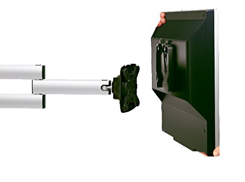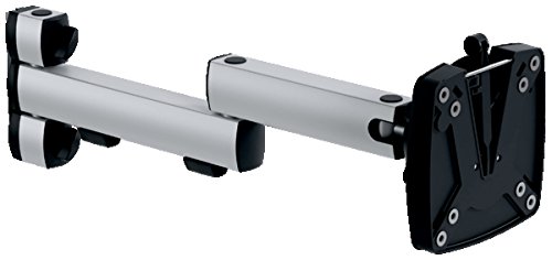 Bildschirm-Schwenkarm NOVUS TSS-Faltarm II Monitorhalter. Anzahl der Gelenke: 3. Tragarm mit 2-teiligem Gelenkarm und QuickRelease zur Standard-Monitorbefestigung 75/100. Leichte Monitore mit einem Gewicht von 10 kg können stufenlos in jede Richtung verstellt werden. Lieferung incl. 2 Kabelhaltern.. Höhe min./max.: 0/845 mm. Ausladung: 450 mm. Max. Schwenkbereich: 270 °. Abmessung der Stellfläche: 100 X 100. Max. Schwenkbereich der Tragplatte: 35 °. Neigbare Tragplatte vorhanden. Werkstoff: Aluminium, Kunststoff. Farbe: silber-anthrazit. Tragfähigkeit: 10 kg. Befestigungsart/Montage: Schnellspannverschluss. GS-Prüfzeichen. Garantie gewährt. Garantiedauer: 5 Jahre.