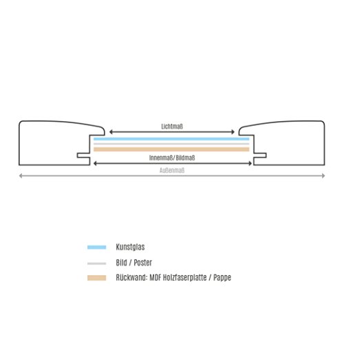 Der „OLIMP PRORSUS 35mm“ ist ein von Hand gefertigter Wechselrahmen und wird für jeden Kunden individuell nach Maß gefertigt. Je nach Wunschgröße ist der Rahmen universal einsetzbar als klassischer Bilderrahmen, Kino Posterrahmen, Puzzlerahmen, Porträtrahmen, Urkundenrahmen, Foto Galerierahmen, Panoramarahmen, Fotocollage Rahmen oder als Rahmen für z.B. Trikots oder Schallplatten. Rahmenleiste aus folienbeschichtetem MDF Holzwerkstoff (voll ummantelt, 35 mm breit) Bruchfeste Scheibe aus entspiegeltem Antireflex Kunstglas (Acrylglas mit 1 mm Stärke) Rückwand aus stabiler MDF Holzplatte (braun) inkl. Metall Biegestiften Aufhängungen für wahlweise Hochformat oder Querformat Wandbefestigung Made in Germany: Design, Entwicklung und Herstellung zu 100% in Deutschland Bestellinformation: Das angegebene Maß ist immer das Bildmaß. Das heißt, die Rahmen werden genauso gefertigt, dass ein Bild mit dem angegebenen Maß hineinpasst. Messen Sie einfach Ihr Bild aus und suchen Sie nach einem Rahmen mit diesem Maß. Ein Bild oder Foto mit den Außenmaßen 20×30 cm benötigt auch einen Bilderrahmen im Format 20×30 cm. Wichtiger Hinweis: Bitte berücksichtigen Sie bei der Wahl der passenden Rahmengröße, dass bei allen Rahmen einen Teil des Bildes überdeckt wird (in der Regel ca. 0,5 cm). Lieferumfang: OLIMP PRORSUS 35 mm MDF Rahmen, Kunstglasscheibe, MDF Rückwand, 2 Aufhängungen WUNSCHFARBE nicht gefunden? Über die Amazon Suche finden Sie die anderen 26 Farben.