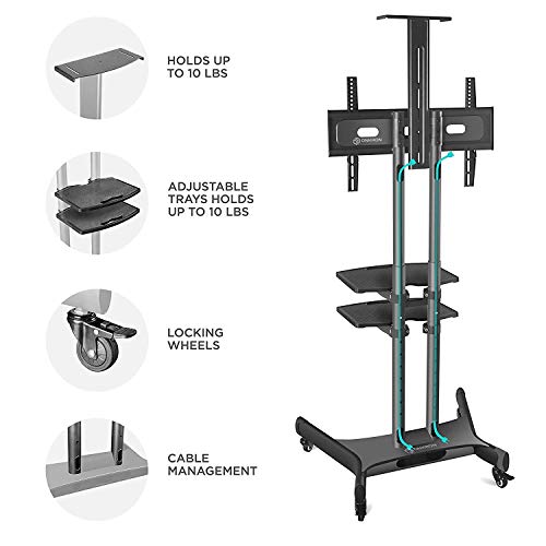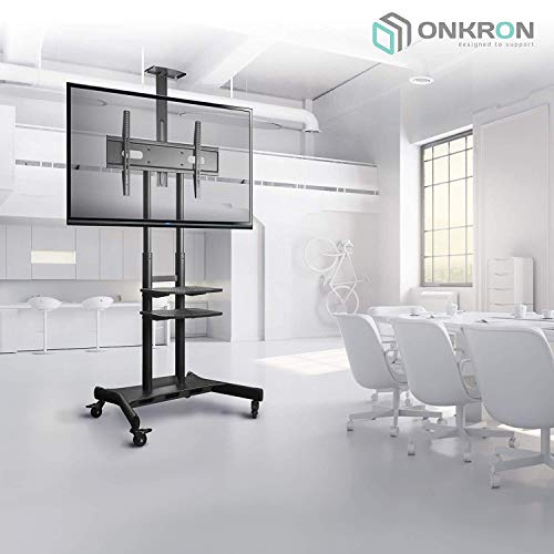 Universal TV Standfuß mit Rollen TS18-81 geeignet für LED LCD OLED Plasma und Curved TV Geräte mit Dispay-Diagonale 55″- 80″ Zoll mit folgenden VESA-Standards von 200 x 200 mm bis 800 x 500 mm. Dieses Modell ist kompatibel mit allen populären Fernseh-Marken, wie Samsung, LG, Sony, Panasonic, Philips, Telefunken, Toshiba, Jaytech, Thomson, Acer usw. Fernsehständer wird für die maximale Kraft konstruiert mit einer max. Belastbarkeit bis 90,9 kg: es ist aus kaltgewalzter Stahl (SPCC) mit der hohen Qualität mit fortgeschrittenen Schweißtechniken gemacht. Mit diesem TV Ständer holen Sie sich Multifunktion, Beständigkeit und Moderne ins Haus, Büro usw. Für zu Hause oder in Präsentationsräumen bringt dieser TV Ständer in Rollbarkeit, Höhenverstellbarkeit und Feststellbarkeit. Die praktische Möglichkeit, digitale Darstellungen wie Filme und Präsentationen vielseitig im Raum darzustellen und die Ausrichtung zu verändern. Schwenkbare und blockierende Räder sind für Aufstell- und Transport-Möglichkeiten. TV Ständer hat zwei feststellbaren Bretten mit einer max. Belastbarkeit bis 4,5 kg für Xbox, PlayStation, DVD und andere Audio/Video Ausrüstung. Durch den Kabelkanal hinter der Säule können alle Kabel platzsparend geführt werden.Die flexible Höhenverstellbarkeit des Standfußes ermöglicht eine fixe Arretierung in Höhen von 1350 bis 1650 mm. Im Lieferumfang finden Sie: TV Stand, Bedienungsanleitung, komplettes Montage-Zubehör, TV Schraubenset und Sie können sofort einfache und leichte Montage beginnen. Bei der Lieferung sind selbstverständlich alle Teile dabei, die Sie für eine Montage benötigen und Sie können sofort einfache Montage beginnen: die Installation ist kinderleicht. Wir bieten Ihnen eine Schritt-für-Schritt-Anleitung. Falls Sie noch Fragen haben oder sich nicht sicher sind, ob Sie die Halterung für Ihre TV verwenden können, schreiben Sie uns oder rufen uns an, wir helfen Ihnen gerne weiter.